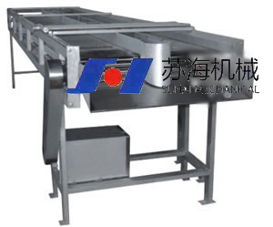 滚杠材质有: 304 不锈钢管、 PVC 管两种。不锈钢链条带动滚杠公转,工作面的滚杠在橡胶轨道上磨擦而自转,从而带动果蔬自由旋转,配合人工检选,挑去不合格果蔬。不合格果蔬由上置或下置的废料输送装置输走。可在出料端外加喷淋清洗装置。生产能力: 2~30T/h 。